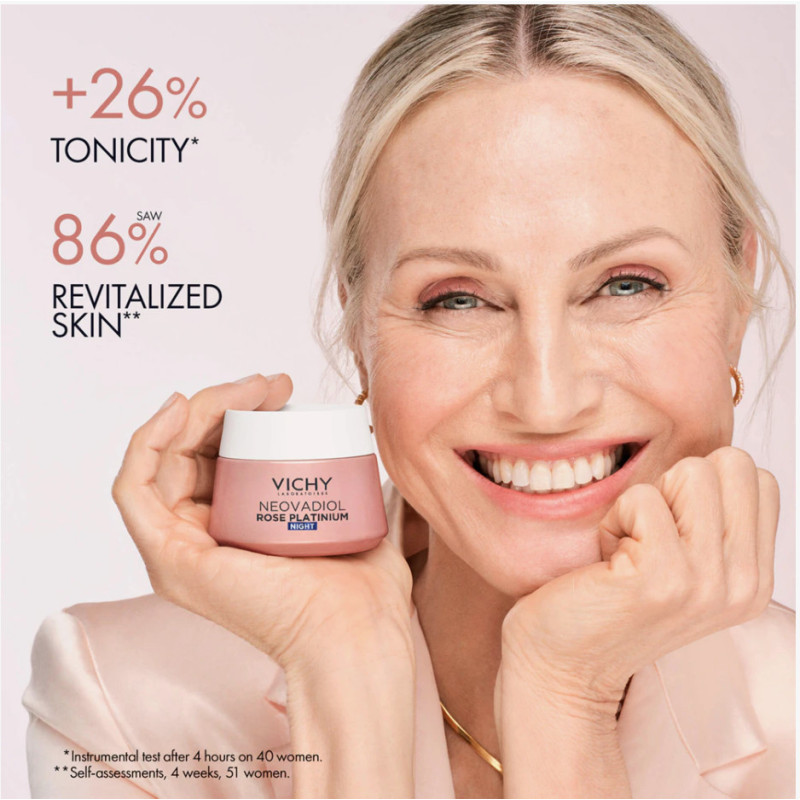 Vichy Neovadiol Rose Platinum es una crema de noche reparadora con efecto iluminador, especialmente formulada para pieles maduras.
